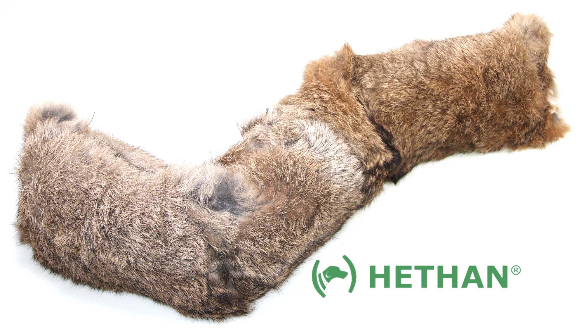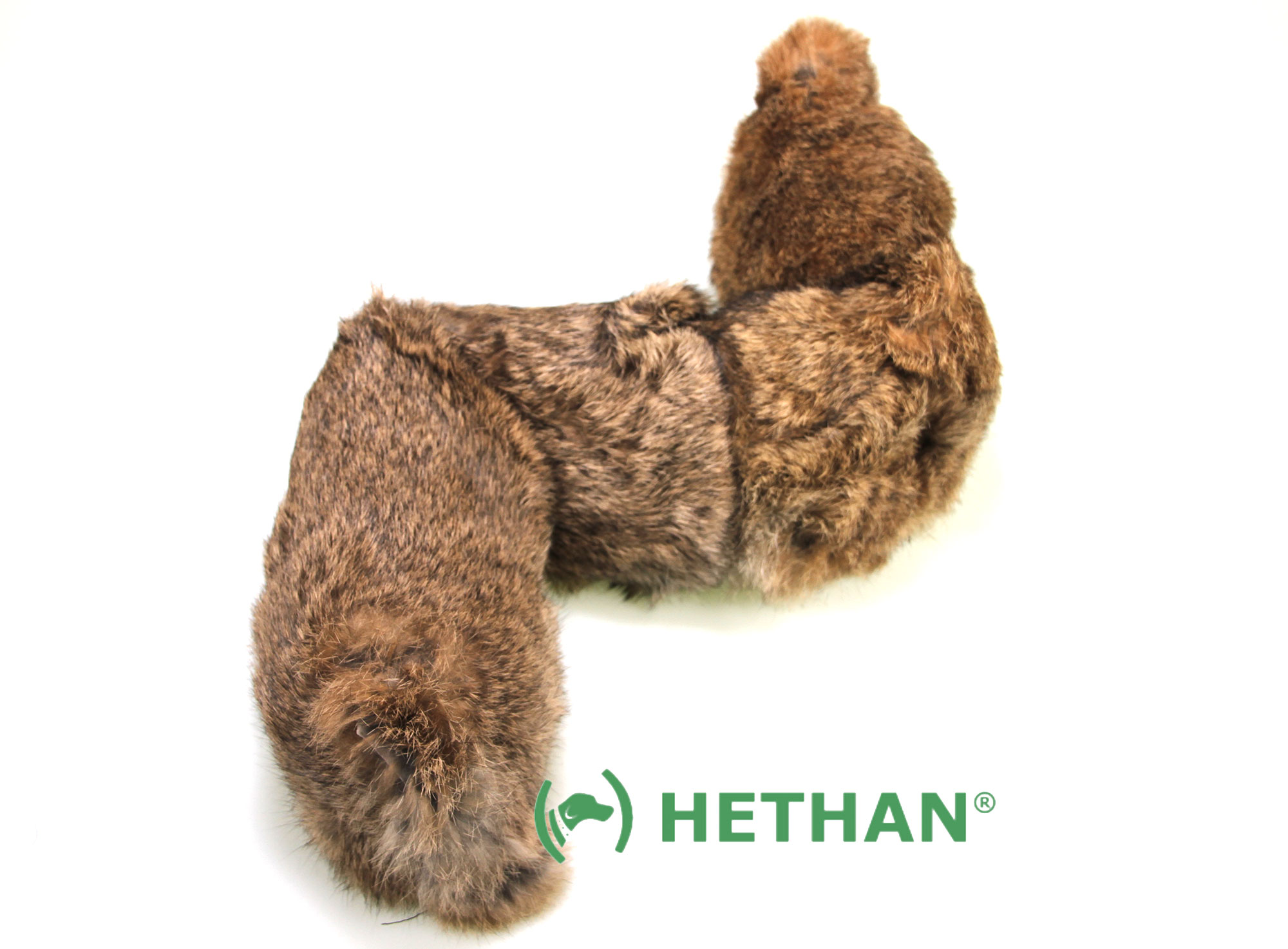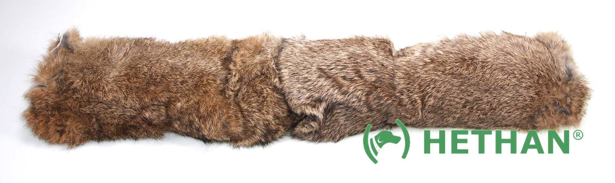 Der dreiteilige Dummy von Mystique full fur (Fell) wiegt 2,5kg und ist für Hunde zum Training mit höheren Gewichten geeignet. Der komplett mit Kaninchenfell vernähte Dummy imitiert durch Gewicht und die dreiteilige Form das Wild. Damit wird das richtigte Aufnehmen in der der Mitte des Dummy gefördert.